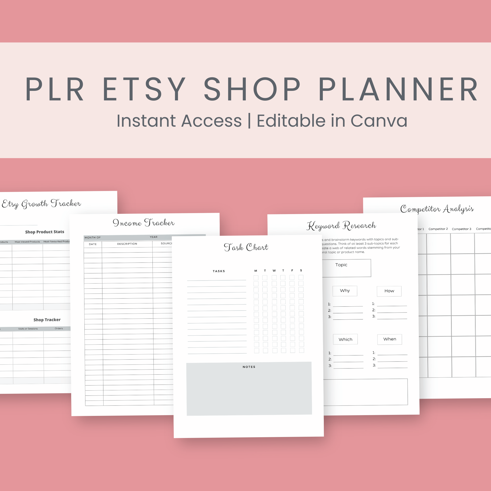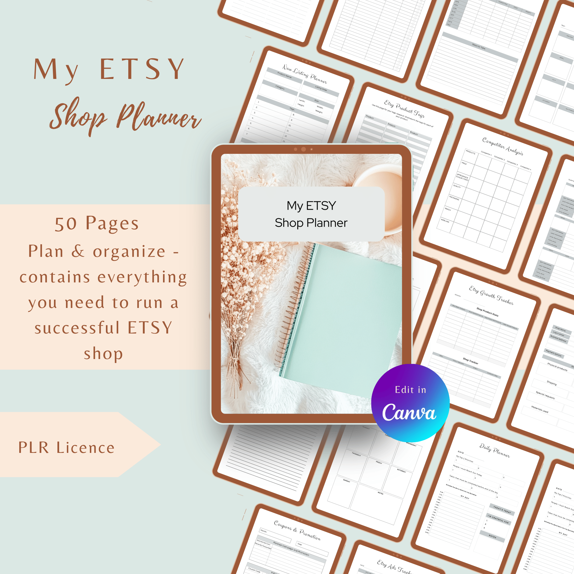 A fully editable Etsy shop planner designed to help your customers streamline, track, and grow their online shop with clarity and ease. Includes 50 pages, Canva + PDF formats, and full PLR rights so you can rebrand, resell, or use it in your own programs and bundles.
