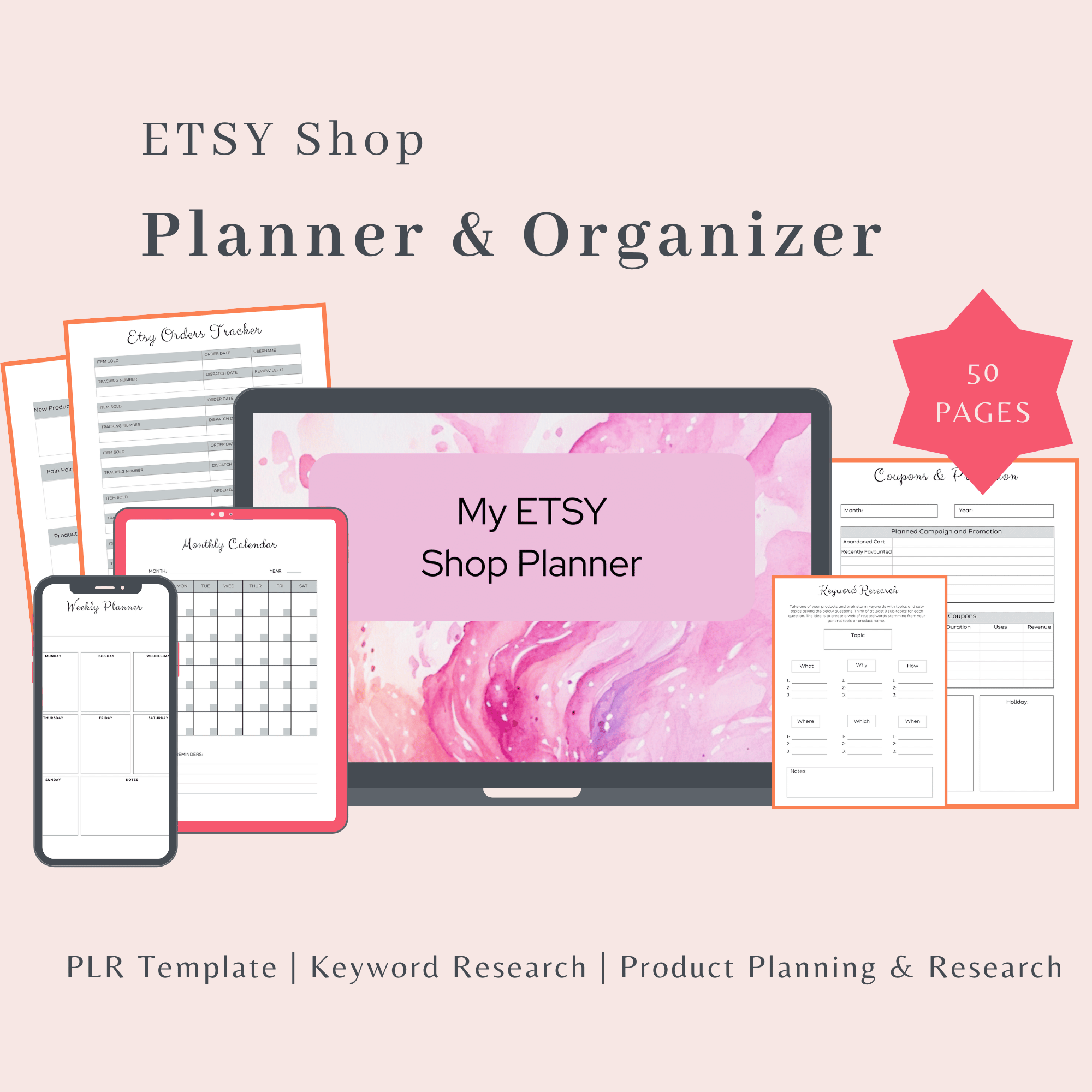 This 50-page editable Etsy Shop Planner helps sellers get organized, stay on top of their listings, track performance, and plan for growth - all in one easy-to-use tool.