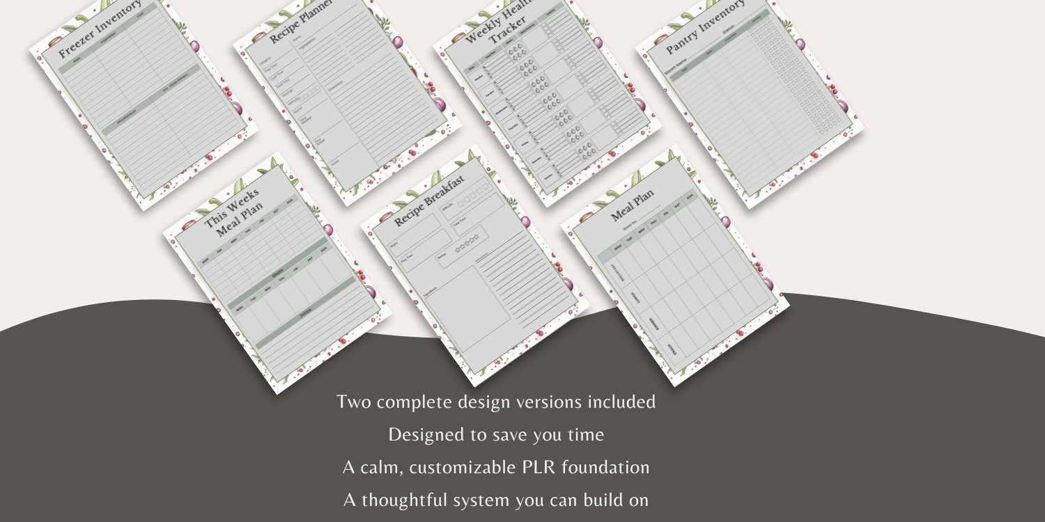 This is a thoughtfully designed 14-page PLR meal planning kit that you can edit, brand, and use in your own projects.
