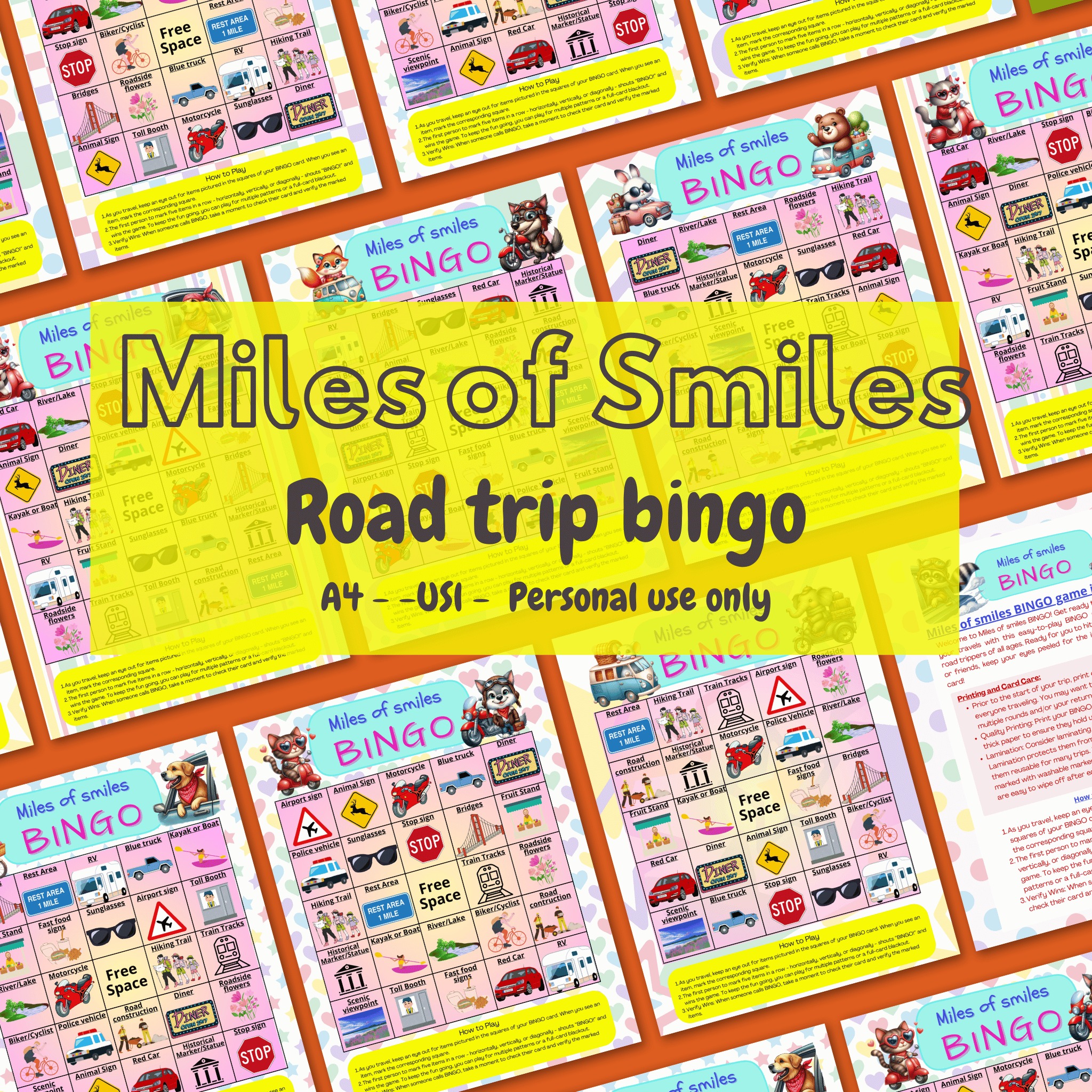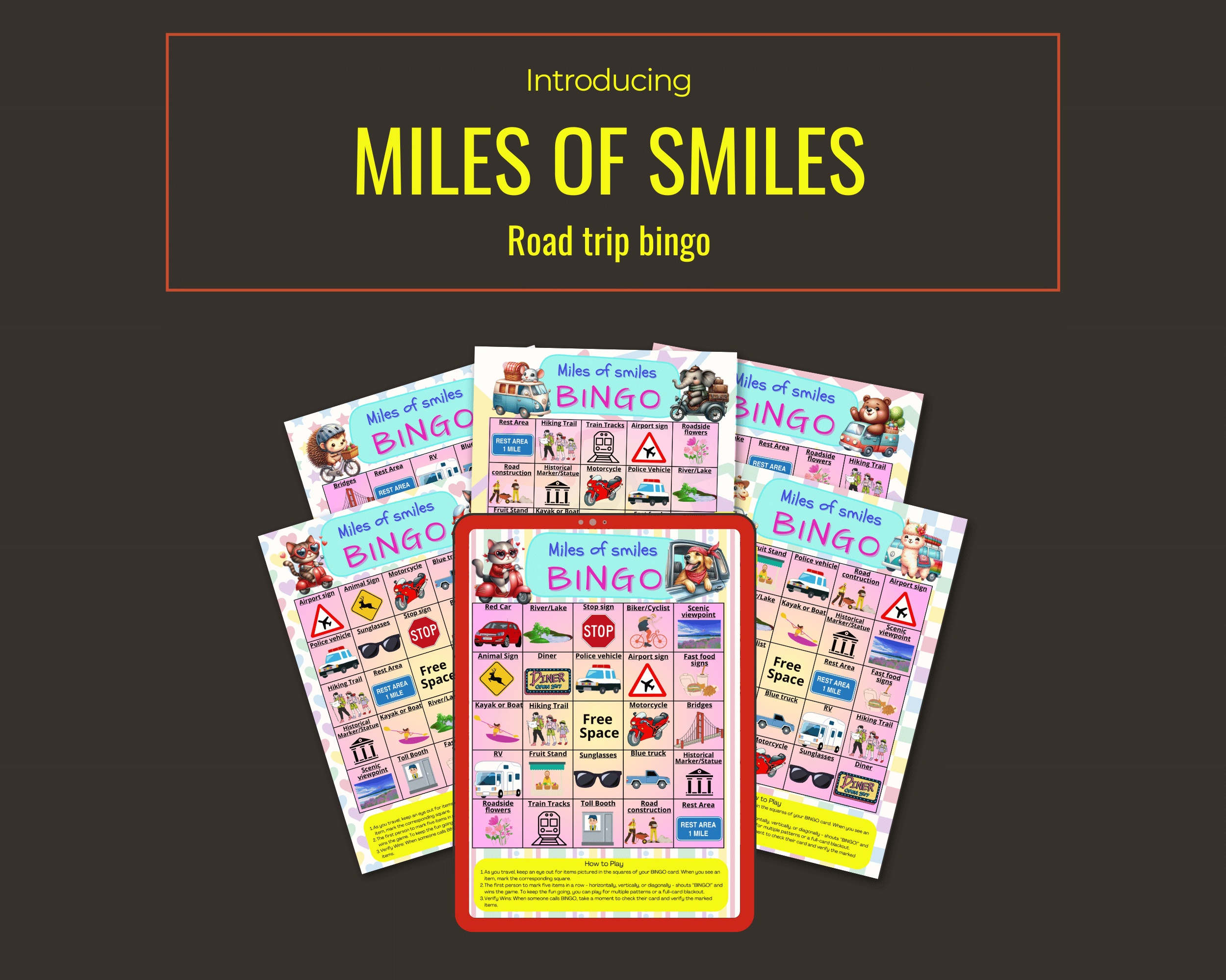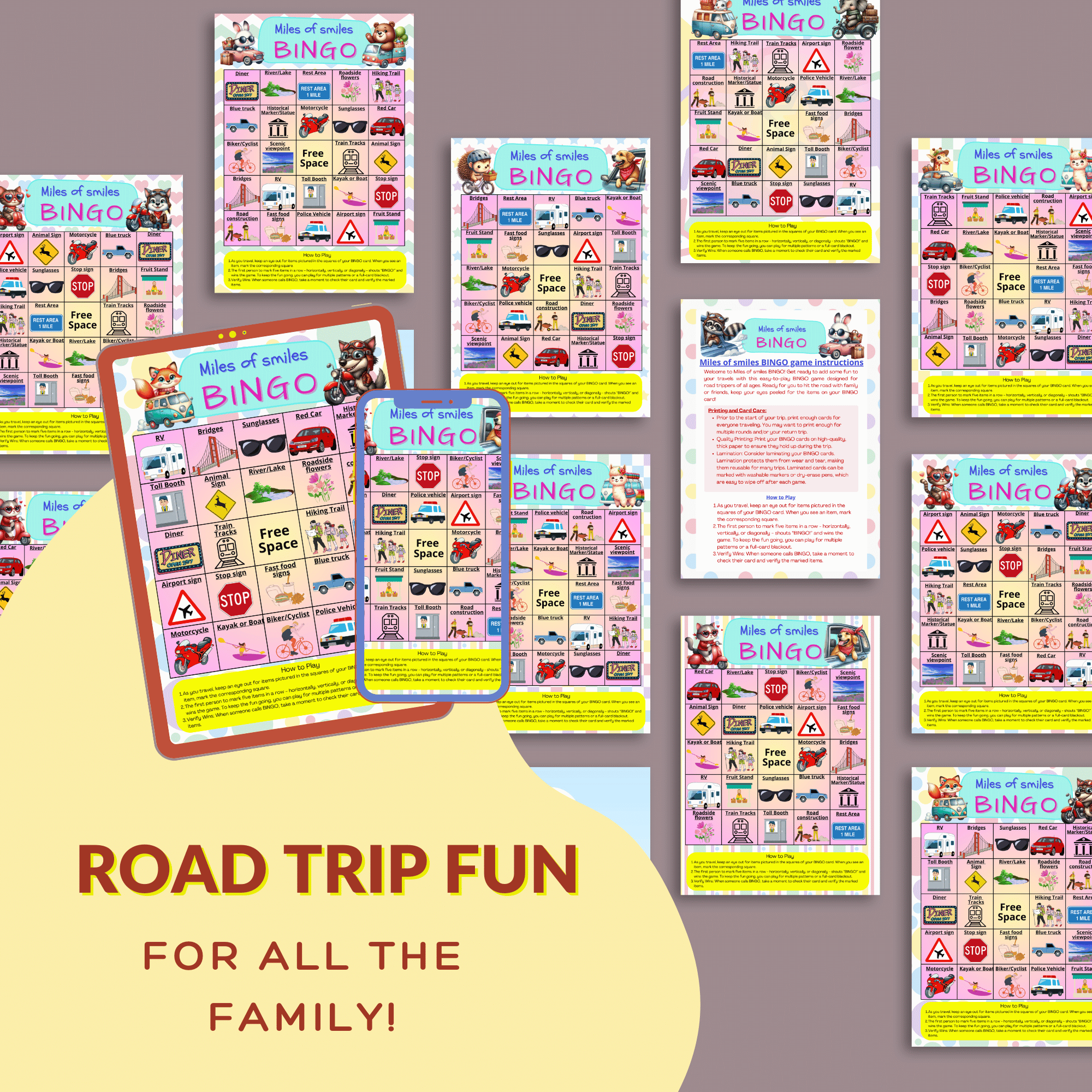 - 🎉 7 colorful, travel-themed bingo cards packed with playful prompts kids can spot on the road