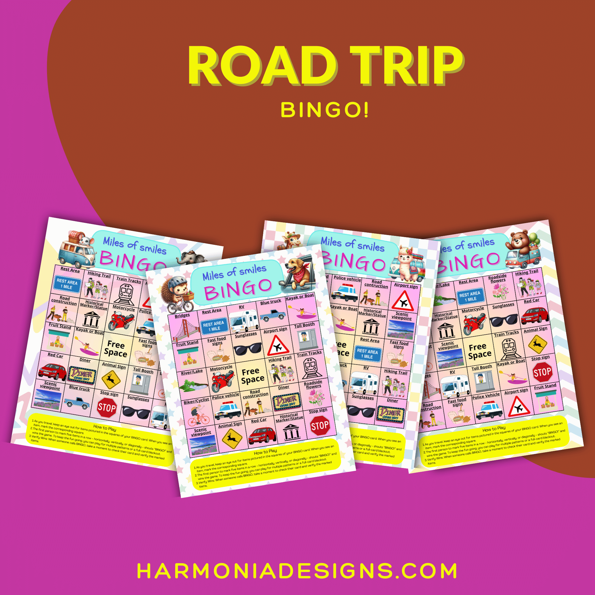 At Harmonia Designs, my mission is to turn everyday moments into lasting memories. Miles of Smiles Bingo transforms car rides into a screen-free, joy-filled experience that sparks curiosity, conversation, and plenty of giggles.