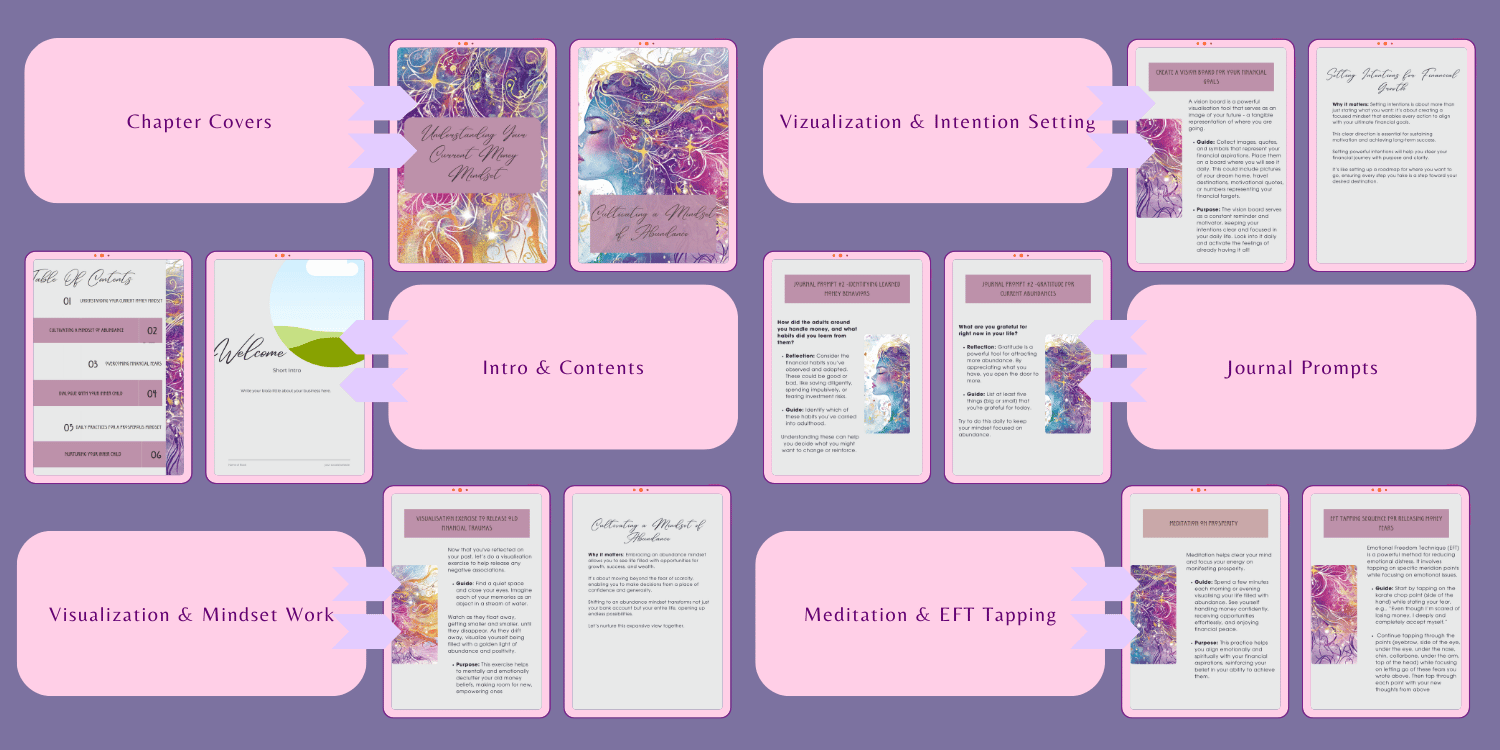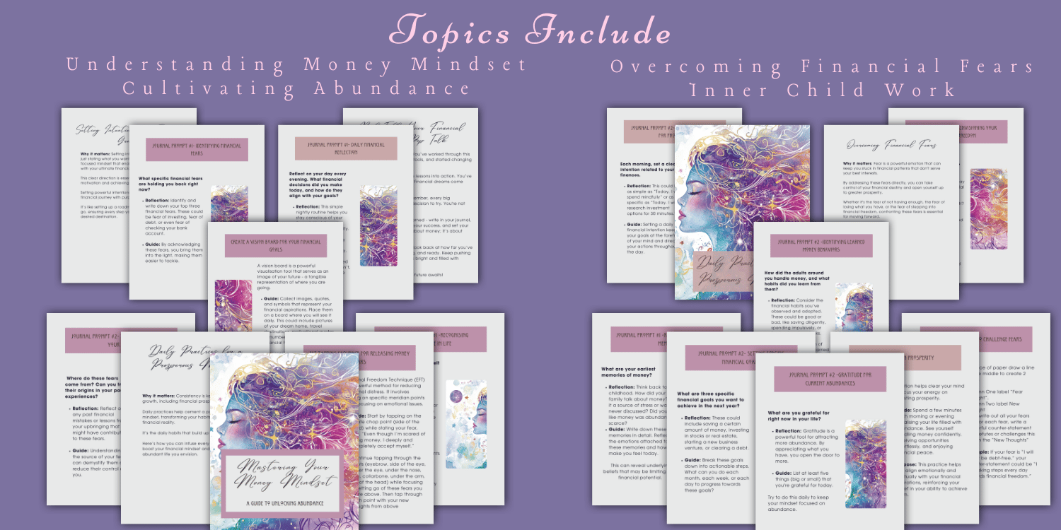 “Mastering Your Money Mindset” is a thoughtfully designed 34-page guided ebook/workbook that helps readers: